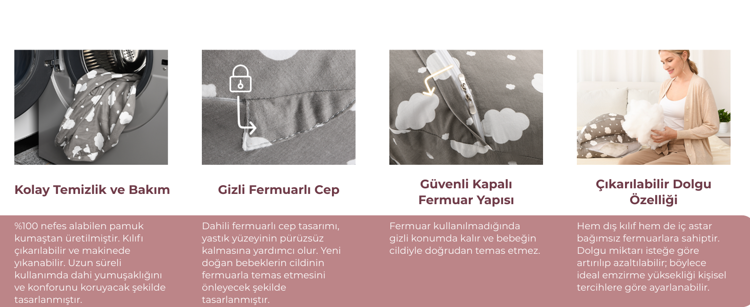 Besleme, destekleme, karın üstü zaman ve oturma desteği için uygundur.Kullanım İpucu