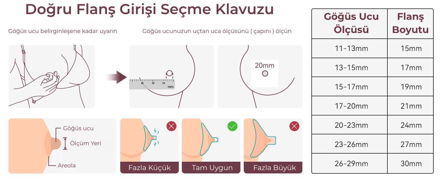 Anne sütüyle temas eden tüm Momcozy pompa parçaları BPA içermez.Doğru Flanş Ölçüsünün Önemi